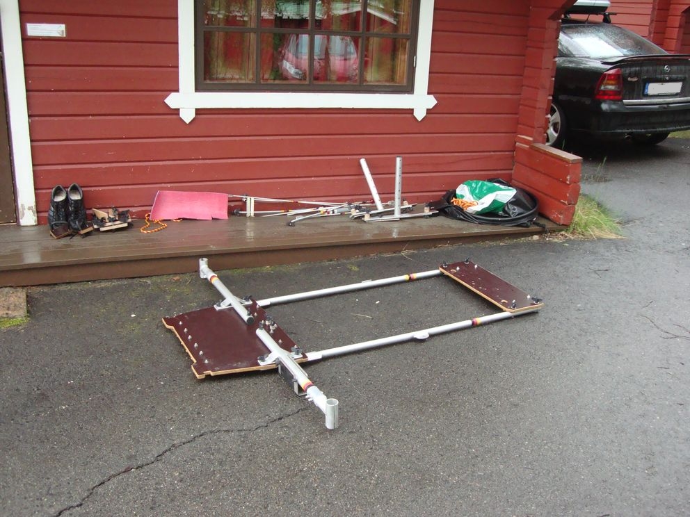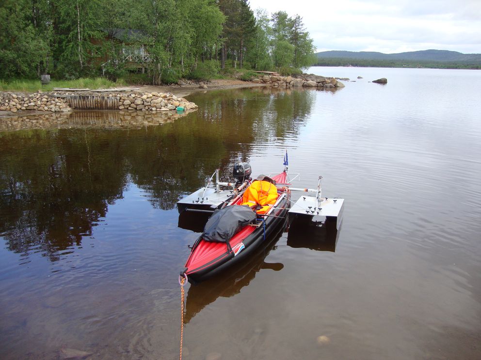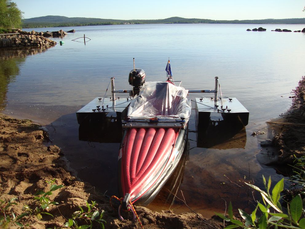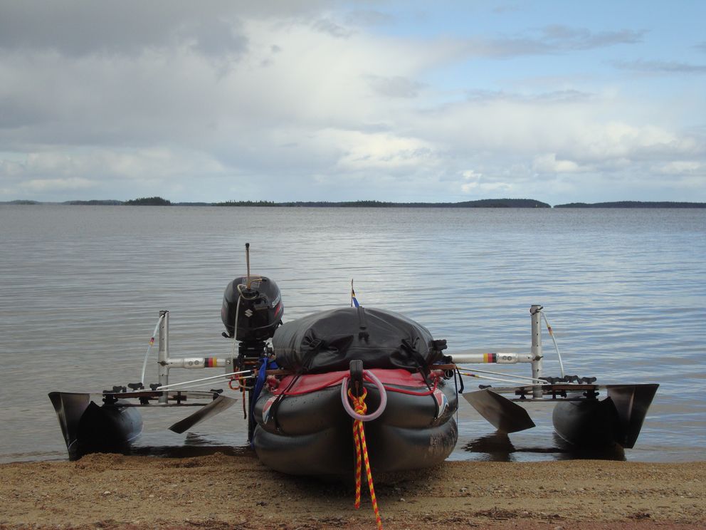 am den Inari-See in Inari - das Luftboot wurde hier mit einer einfachen Plane gegen Regen abgedeckt