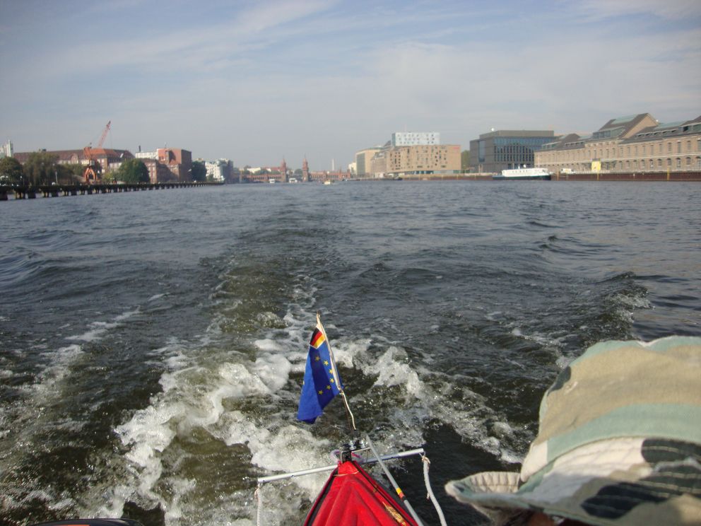 auf der Spree in Berlin - im Hintergrund die Oberbaumbrücke