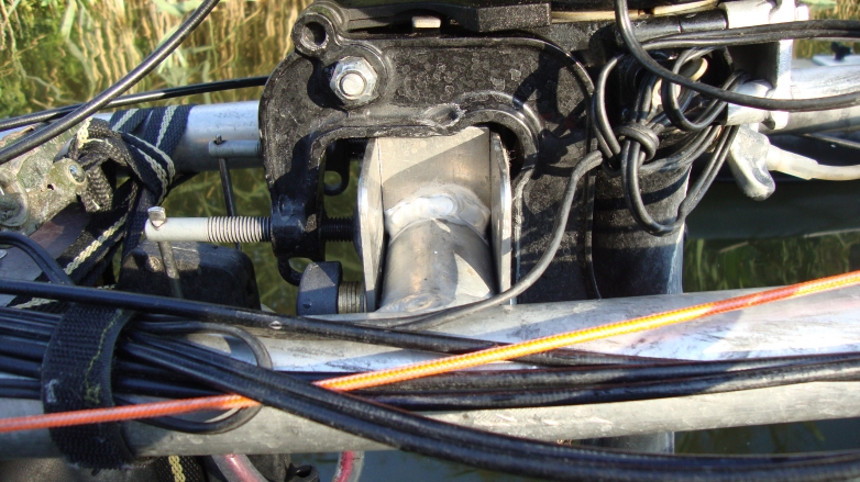 Verbindungsstücke der Längsträgers angeschweißte Arretierung für die Motorhalterung (hier linke Oberseite) |